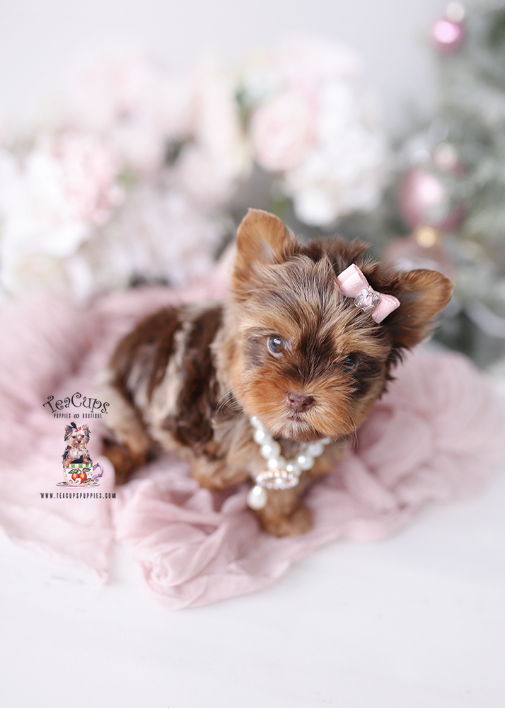 This adorable Yorkie puppy was home-raised by one of our amazing local South Florida Yorkie breeders and is currently available for sale in the boutique! Here at TeaCups, Puppies & Boutique ®, we’ve been specializing in tiny Yorkie puppies for sale since 1999! For more information on our Yorkie puppies, please call +1 (954) 985-8848.